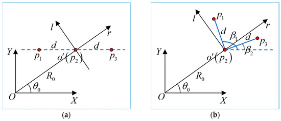 is the distance between the formation center and the radar at time t1, and is the azimuth angle of the relative to the radar at time t1. During the beyond-the line-of-sight monitoring of HFSWR, the absolute coordinate value of is much smaller than . The can be approximated as: