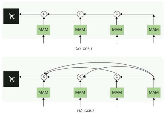 Figure 7. GGB Variant. (a) Consists of four MAM modules directly spliced, and (b) consists of four MAM modules densely connected.