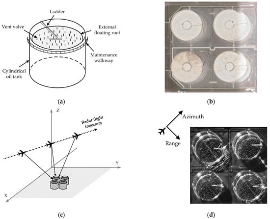 Due to its all-day, all-weather, long-range, high-resolution imaging capabilities [,], SAR has been an important tool in applications like resource mapping [], environmental monitoring [], and disaster assessment []. Oil tanks are crucial monitoring targets in SAR remote sensing applications. Oil tank monitoring aids in getting information on oil storage levels, identifying potential safety risks, and averting leaking accidents.