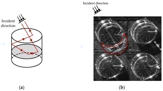 This section analyzes the radar signal propagation path and imaging characteristics of external floating roof oil tanks during multi-aspect observation. From the analysis in the previous section, it can be seen that there are mainly two types of reflections inside the oil tank. They are dihedral reflections and multiple reflections of radar signals produced between the inner wall of the oil tank and the external floating roof. Dihedral reflection reflects the real target scattering center in the image, whereas multiple reflections are the cause of multipath ghost images. This section mainly analyzes the relationship between the multipath ghost images inside the oil tank and the observation azimuth.