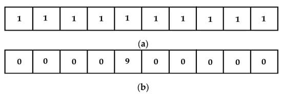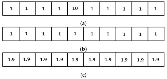 An example of a certain pixel’s amplitude sequence before and after PCA decomposition is shown in Figure 14. There are ten sub-image sequences in this sample. This pixel has a large amplitude value in sub-image 5 due to the influence of multipath ghost images, assumed to be 10. There is no multipath ghost image in other sub-apertures, and the amplitude value is set to 1, as shown in Figure 14a. The ideal value of multipath suppression is to obtain a sequence of all 1 s, as shown in Figure 14b. Nevertheless, the sequence value obtained after PCA decomposition is displayed in Figure 14c, and the multipath signal is not effectively suppressed. Therefore, multipath signal suppression cannot be directly addressed by the PCA method.