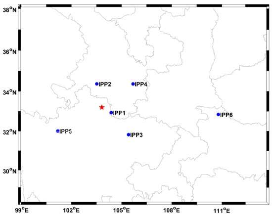 Spatial distribution of the six IPPs with the closest and anomalous data. (The red star represents the position of the epicentre.)