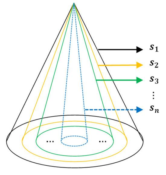As observed in Figure 4, cones of varying sizes and colors represent pyramid pooling windows with sizes . The PSPP (point cloud spatial pyramid pooling) structure enables the pooling and integration of features under multiple window sizes, ultimately resulting in features of dimensions . PSPP achieves the aggregation of local information with different characteristics by concatenating network features obtained from various scale neighborhoods. Compared to conventional pooling operations, PSPP offers the advantage of being non-parametric, effectively enhancing the network’s ability to learn point cloud features.