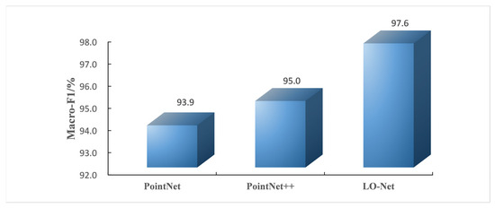 Comparison of Macro-F1 scores for PointNet, PointNet++, and LO-Net networks.