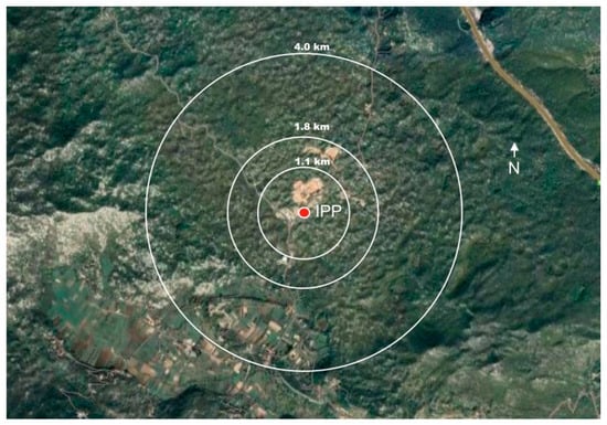 The circular area around the IPP based on the Euclidean distance from the IPP (the so-called “Ring” approach) is the simplest and, therefore, the most commonly used approach (Figure 1). However, more complex models that use additional information have been developed [,].