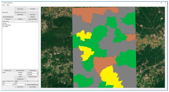 As already stated, the available online maps used in GIS may be quite old and sometimes misleading. Changes can be significant when comparing maps taken during different times of the year. Also, there is always the possibility that some new roads, houses, or other infrastructure have been built. All these facts can affect planning and search priorities. Therefore, if possible, up-to-date information about the terrain is very important and incorporates aerial images of the area of interest taken at the time of the mission by satellite or UAV (more detailed). The drawback to this approach is the additional time needed to collect and transfer needed images for new maps []. On the other hand, high-resolution images collected for this purpose can be used for the automatic detection of humans [,,]. The mission commander assigns UAVs for a search of certain search cells (that have features compatible with this type of search).