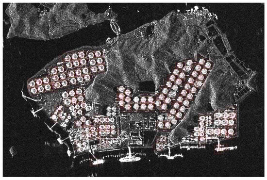 In order to realize oil tank detection and evaluate the effectiveness of the proposed method, we intend to construct the dataset on images of the Zhoushan data. The Zhoushan data include strong scattering targets such as oil tanks, harbors, ships, containers, and buildings with metal structures. The dataset contains regions with dense oil tanks, as shown in Figure 6.