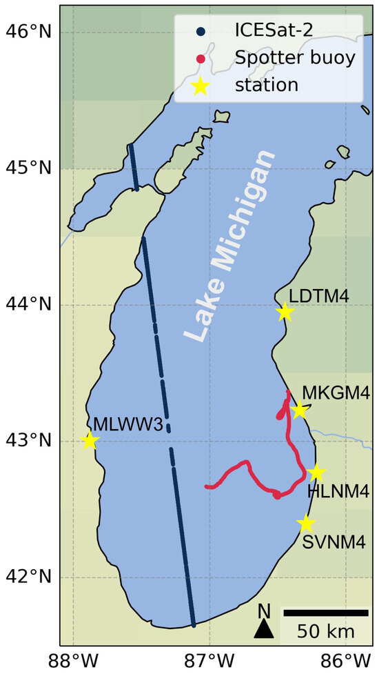 - Lewis, C. Huge Waves Hit Lake Michigan’s Eastern Shore, after Lake Superior Waves Set Record in October. Available online: https://www.jsonline.com/story/weather/2017/12/07/huge-waves-hit-lake-michigans-eastern-shore-after-lake-superior-waves-set-record-october/930623001/ (accessed on 11 October 2023).