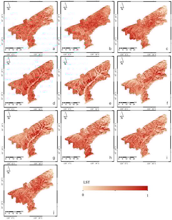 Due to the susceptibility of the 11th band of Landsat 8 TIRS to interference from stray light and other noise, calibration can introduce significant biases. If introduced into calculations, this approach may compromise the accuracy of subsequent results [52]. Hence, this study utilizes the 10th shortwave band of Landsat 8 TIRS for computation, employing the corresponding K1 and K2 values from the table for analysis.