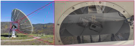 ATLAS was designed to consolidate national resources in preparation for the establishment of an SST sensor network. In 2019, Instituto de Telecomunicações initiated a major retrofit of its 9-m Cassegrain Antenna located in Pampilhosa da Serra Space Observatory (PASO), Portugal, to attach ATLAS, a complete radar system operating in the C-band (5.56 GHz) (Figure 1). A comprehensive technical overview of the system was presented in [], accompanied by simulation studies on its expected operational performance. At the time of publication [] in 2021, the generation and processing of the baseband signals were being thoroughly tested in a laboratory. These experiments led to several studies on the design of waveforms and signal processing chains for the system [] (Section 4) []. The studies culminated in the first real-life scenario tests, where the whole system (except the antenna and power amplifiers) was tested in a setup with a major reflector at a well-defined distance [].