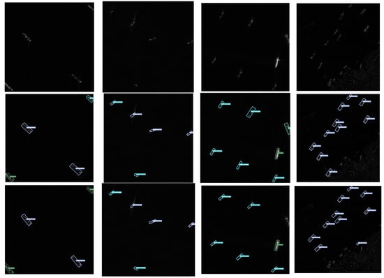 As shown in Figure 7, the integration of high-frequency features in SAR images enables rapid and accurate localization of ship targets. However, it is susceptible to interference from echo noise, leading to errors in the detection of rotational directions. Conversely, the utilization of low-frequency information effectively mitigates this issue, allowing the network to comprehensively learn the characteristic information of ship targets across different frequency bands. This enhances the network’s resistance to interference.