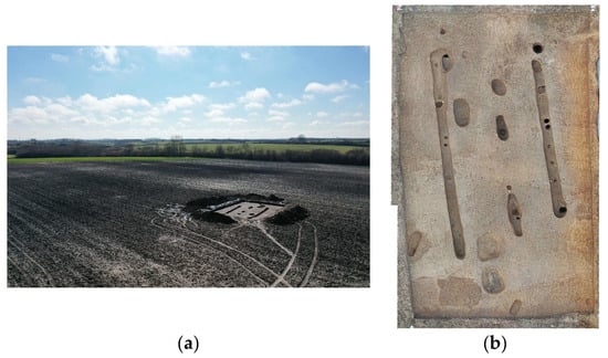 (a) Oblique drone image of excavated house. DJI Mavic Pro2, 15 March 2021. Author: R. Šošić Klindžić. (b) Orthophoto of excavated house. Author M. Mađerić.