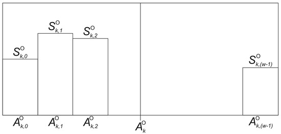 The task of the subsystem is to determine the visual representation of the vehicle surrounding in point P, where the actual location of the vehicle is. A camera mounted on the vehicle is used for this purpose. The vehicle or camera is rotated to provide full coverage of the surroundings. Actual camera angle information is read from on-board systems and appended to each kth image, . Knowing this parameter and the horizontal angle of view , the bearing (angle) can be determined for each image pixel column (Figure 2).