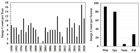Number of available remote sensing images in each year and season.