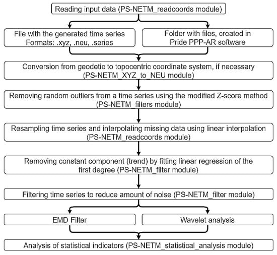 Since time series are supplied by various data analysis centers in arbitrary formats, PS-NETM supports such formats as *.series, *.NEU, and *.XYZ.