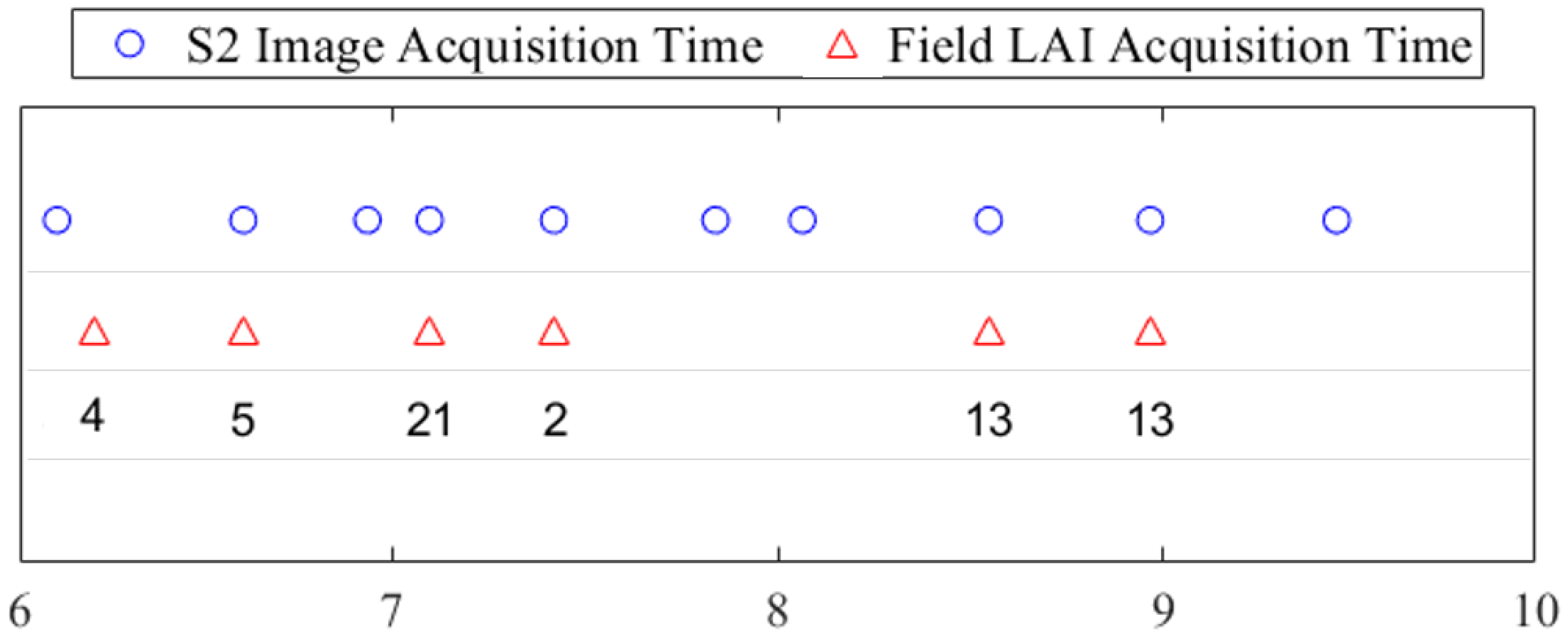 2.4. Matching Sentinel-2 Reflectance and Field LAI