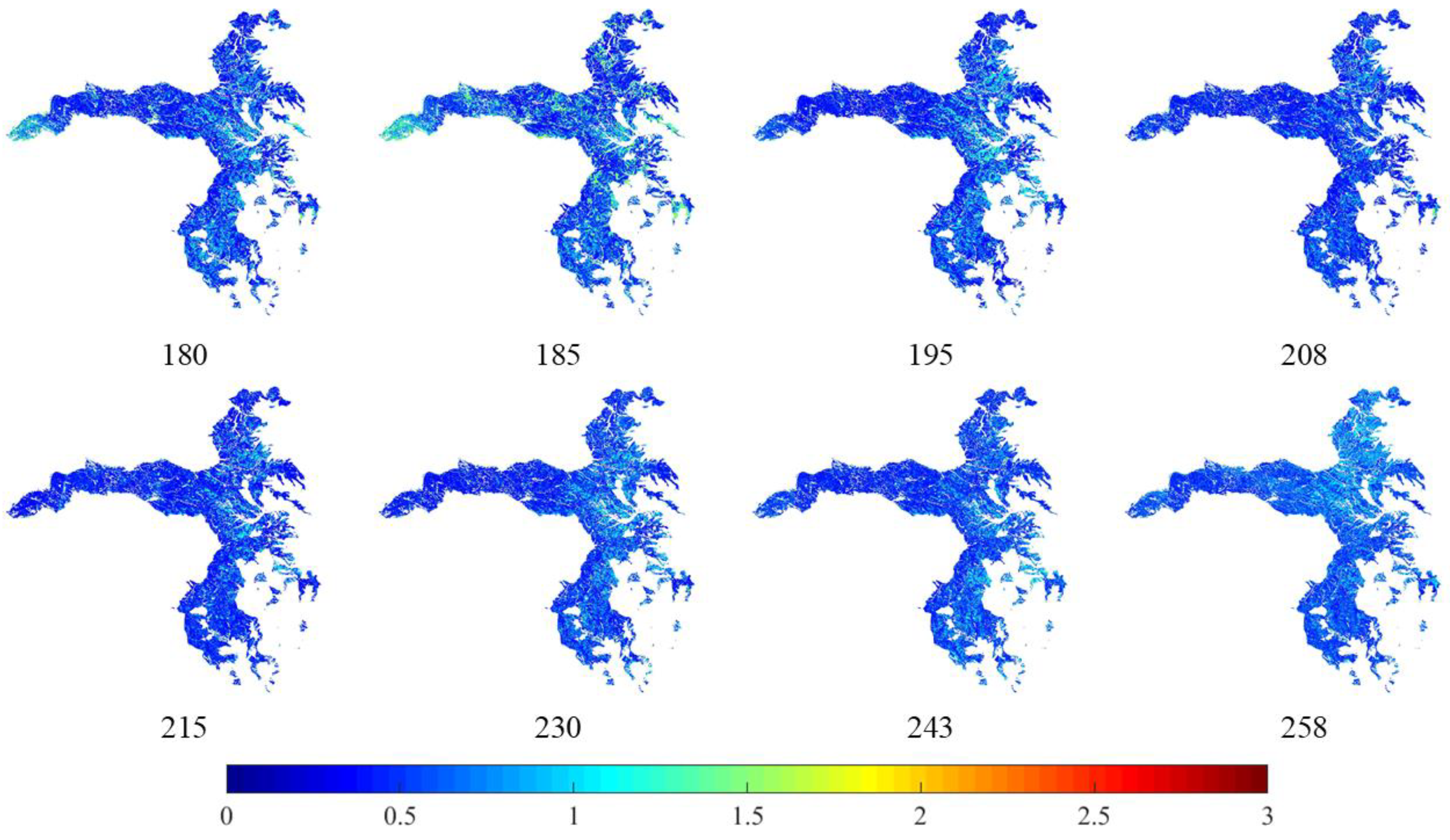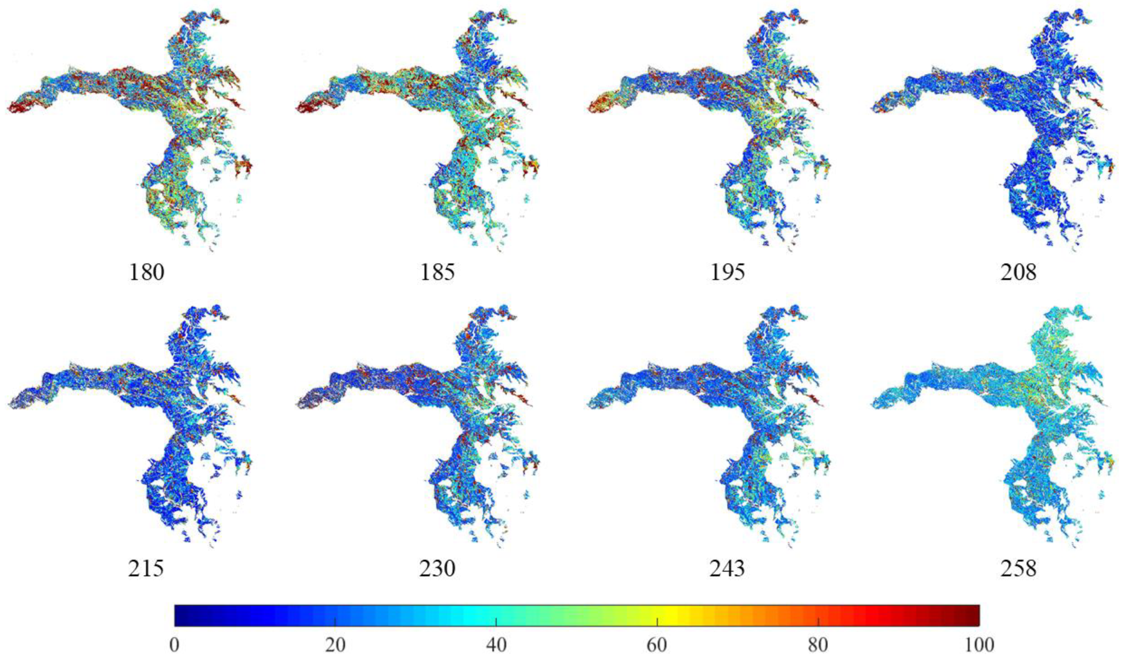 5.4. Evaluation of LAI Time Series Distribution Maps