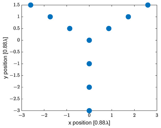 where is the maximum dimension of the Y-array, is the number of antenna elements in each arm, and is the spacing of the array. According to Equation (20), the spatial resolution is 9.84° approximately.