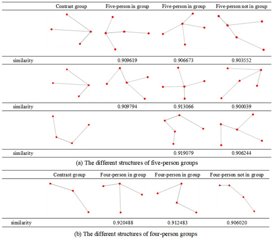 The visualization of different structures in five-person and four-person groups and their similarity to the contrast group.