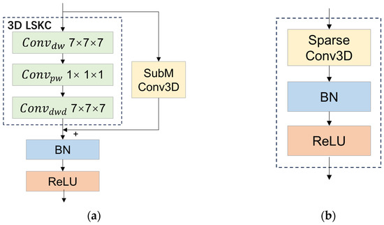 Structures of LSKC module and sparse conv module. (a) LSKC module; (b) Sparse conv module.
