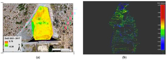 - Alexiou, S.; Deligiannakis, G.; Pallikarakis, A.; Papanikolaou, I.; Psomiadis, E.; Reicherter, K. Comparing High Accuracy T-Lidar and Uav-Sfm Derived Point Clouds for Geomorphological Change Detection. ISPRS Int. J. Geoinf. 2021, 10, 367. [Google Scholar] [CrossRef]