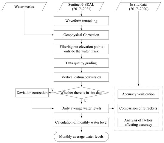 Lakes and reservoirs cover only about 2% of the Earth’s land surface. However, they play an important role in the development of the national economy, such as regulating river runoff, developing irrigation, providing industrial and drinking water sources, breeding aquatic organisms, improving the regional ecological environment, and shipping [1,2]. They are quite vulnerable to human activities like industry, agriculture, aquaculture, and climate change [3,4,5]. Under the influence of natural and anthropogenic factors, lakes and reservoirs may change considerably, and even the water bodies may disappear [6,7]. Water levels can clearly show the changing trends under those factors. Therefore, it is essential to protect and rationalize water resources by accurately collecting information on fluctuations in lakes and reservoirs water levels and studying their spatio-temporal changes in different periods.