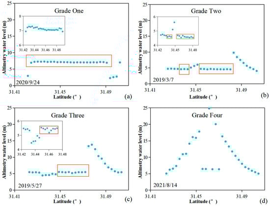 Data quality grading of Shijiui Lake. (a–d) depict data samples for grade one through grade four.