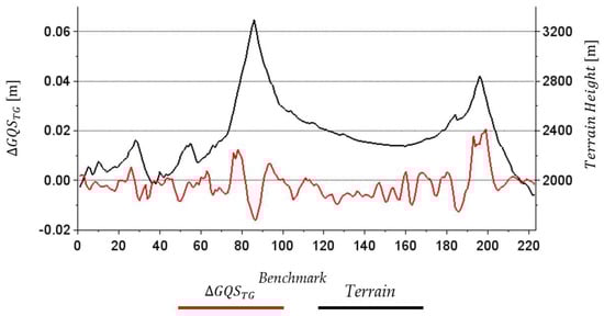 The values for the three analysed versions for the GSVS17 profile points are presented in Figure 3. It is clear that the general course of the GQS values reflects the terrain heights. However, the lines for the different model versions are nearly parallel, although the distances between them clearly increase with the terrain height.