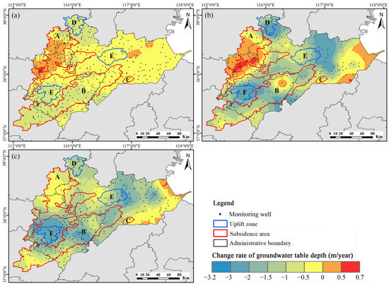 - Su, G.; Wu, Y.; Zhan, W.; Zheng, Z.; Chang, L.; Wang, J. Spatiotemporal evolution characteristics of land subsidence caused by groundwater depletion in the North China plain during the past six decades. J. Hydrol. 2021, 600, 126678. [Google Scholar] [CrossRef]
