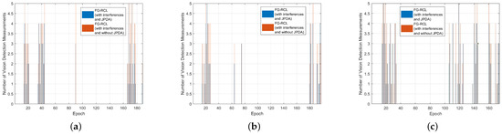 The total number of visual detection measurements and the number of validated measurements after JPDA. (a) Robot 1. (b) Robot 2. (c) Robot 3.