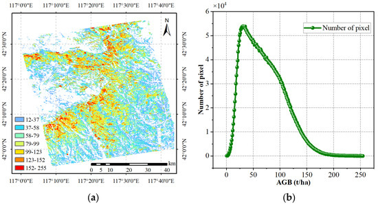 where AGBj is the AGB (t/ha) of the jth sample plot, m is the number of trees in the plot, Wi is the AGB of the ith tree (kg), and S is the area of the sample plot (S = 0.06 ha).