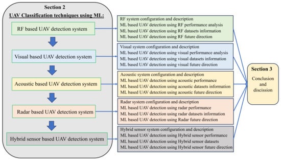 Figure 3. In addition, a summary of recent related research on RF-based methods using ML for UAV detection and classification is shown in