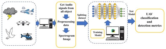 204]. The system employs a customized radar called the “Cantenna” to detect moving objects within a specified target region. An acoustic sensor array is utilized to discern whether the object identified by the radar is a UAV. Furthermore, the system incorporates a pre-trained DL model consisting of three MLP classifiers that collectively vote based on auditory data to determine the presence or absence of a UAV. When the system was evaluated using both field and collected data, it demonstrated accurate identification of every instance in which a UAV was present, with very few false positives and no false negatives.