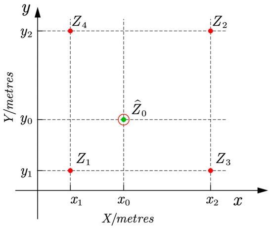 where is the weight of the measured point , is called the Kriging estimation of . As long as the weight coefficient is determined, the forecast point estimation can be obtained. Kriging interpolation estimation is used to calculate the weight under the condition that the estimate is unbiased and the estimation variance is minimum.