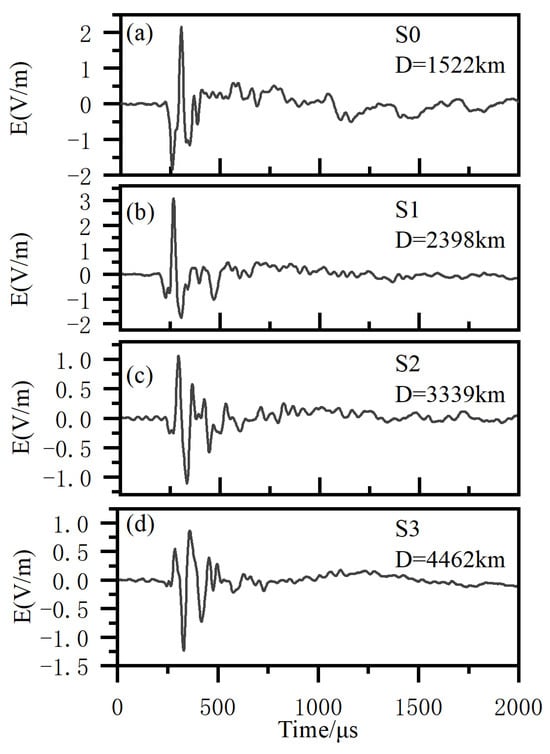 (a–d) The LEMP waveform data from different distance.