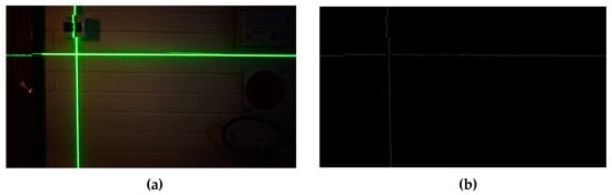 According to Equations (1) and (2), all the points on structured light planes can be calculated. First of all, the light strips on the image frame need to be detected, as shown in Figure 3.