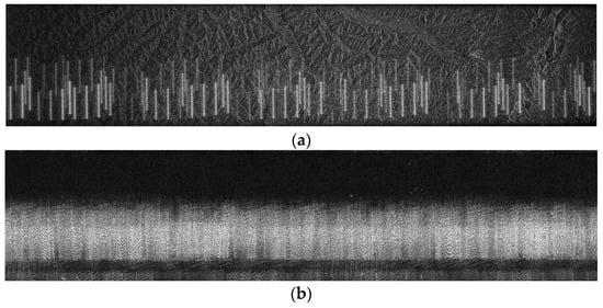 WBI-contaminated Sentinel-1 SAR images, which was collected of (a) western China on 25 August 2017 and (b) northeastern Germany on 8 May 2019.