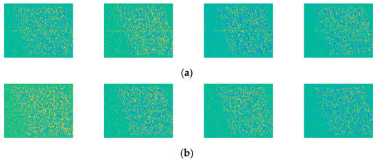 (a) Real part and (b) imaginary part of simulated SAR echoes with WBI corruption in the time–frequency domain for training and testing the WBIM-GAN.