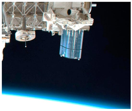 This investigation examined nighttime imagery from the DESIS, a push broom, hyperspectral imaging spectrometer with 235 bands from 400 to 1000 nm at a 2.55 nm spectral sampling interval and 30 m GSD [28,29] that was developed in a collaboration between Teledyne Brown Engineering (TBE) and the DLR (Figure 1). DESIS has operated since 2018 on ISS via the Multi-User System for Earth Sensing (MUSES), a TBE-owned and operated, nadir-facing, precision pointing platform capable of holding up to four sensors and supporting customer-selected acquisitions (Figure 2).