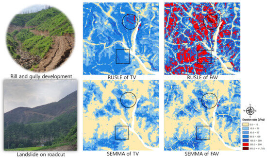 - Shin, S.S.; Park, S.D.; Kim, G. Risk Assessment of Soil Erosion Using a GIS-Based SEMMA in Post-Fire and Managed Watershed. Sustainability 2022, 14, 7339. [Google Scholar] [CrossRef]