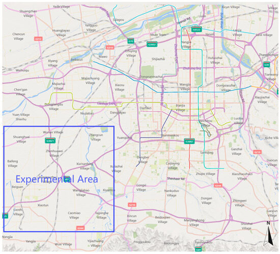 Field tests were conducted in the southwest outskirts of Xi’an, China, using the LEO satellite downlink distributed jamming optimization method with non-dominated sorting genetic algorithm proposed in this article, targeting the LEO constellation of the China Satellite Network. The experimental area is illustrated in Figure 4.