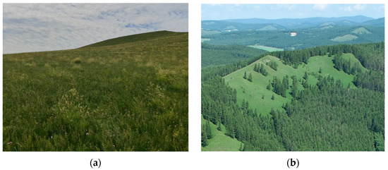 Data collection on growth in areas of grassland and forest vegetation. (a) Appearance characteristics of grass; (b) Appearance characteristics of forests.