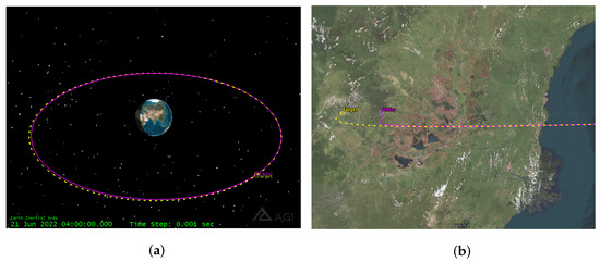 - Fang, X.; Geng, Y. Simulations of spacecraft attitude control for tracking maneuvers with MATLAB and STK. In Proceedings of the 2014 IEEE International Conference on Information and Automation (ICIA), Hailar, China, 28–30 July 2014; pp. 1160–1165. [Google Scholar]
