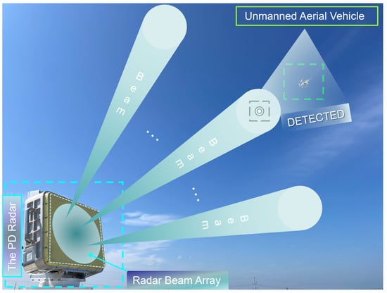 The PD radar utilized in this study worked at the frequency of 9.6–12 GHz. A transmitting power of 320 W, a minimum detectable range of 150 m, a range resolution of 30 m, both azimuth and elevation resolutions of 0.6°, a data rate of 6 s, a maximum detection distance of 20 km, and a beam coverage of 360° were achieved. Furthermore, this PD radar was capable of detecting and tracking target velocities in the range of 0.3 m/s to 100 m/s. The physical diagram of the radar is shown in Figure 9, while more detailed parameters are presented in Table 7.