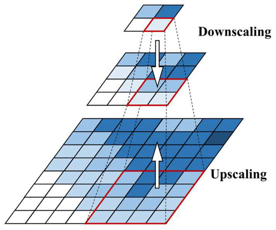 Schematic diagrams of nonlinear spatial pyramid mapping constructed by integrating upscaling and downscaling.