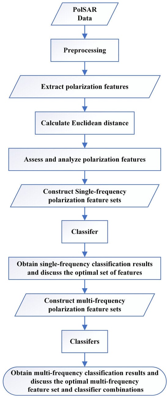 Therefore, two main factors hinder the accurate classification of sea ice during the melting period. Firstly, there is already a wealth of polarization features available for sea-ice classification, but the classification capabilities of multi-frequency polarization features for sea ice during the melting period have not been fully explored. Secondly, although many classifiers have been applied to sea-ice classification, the impact of different combinations of classifiers and feature sets on sea-ice classification results remains uncertain.