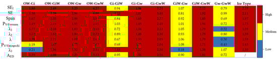 where represents the ED values of polarization features in the ten combinations. When the Ice Type ≥ 1.2, we consider that this polarization feature has strong overall separability capability, meeting the requirements of sea-ice classification.