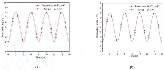 Figure 11 illustrates that precession and swing correspond only at Position 1 and Position 2 with regards to the observation angle (refer to Figure 10). The varying forms of micro-motion result in a dissimilar route between the two positions.