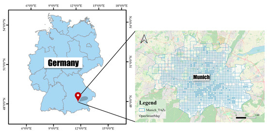 To conduct a fine-grained analysis of urban vibrancy patterns, the present analysis adopted traffic analysis zones (TAZs) provided by the Munich Transport Corporation (MVG) as the spatial unit. These TAZs were constructed by considering the transportation network layout, land use characteristics, and population distribution, thereby better capturing the spatial heterogeneity within the city. Compared to a regular grid (e.g., 500 m × 500 m), the MVG TAZs offer more flexibility in terms of scale, allowing them to accommodate the high density of the city center and the low density of the suburban areas.