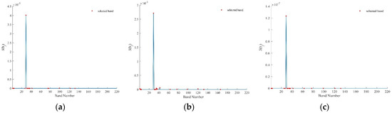 Many BS methods have been developed in the past. Generally speaking, BS can be performed by band prioritization (BP), which ranks all bands according to a BP criterion. As a result, BP can be considered as unsupervised BS without requiring prior knowledge, selecting bands in accordance with their priority scores with no reference to a specific application, such as variance, entropy, information divergence, maximum variance principal component analysis (MVPCA) [3], mutual information [4,5], constrained band selection (CBS) [1,6], minimum estimated abundance covariance (MEAC) [7], etc. This type of BP is easy to implement and has been extensively used for BS.